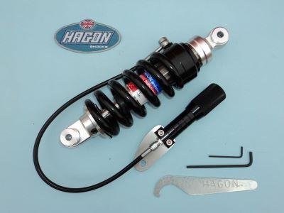 Los mono-amortiguadores Hagon pueden ser pedidos a medida del cliente. Es decir si el conductor habitual pesa más de 100kg o si el peso total del conductor habitual junto al peso del pasajero es más de 180kg es muy recomendable el uso de un amortiguador "hecho a medida". No solamente se monta un muelle con mayor resistencia además se instale un hidráulico tarado diferente para optimizar el funcionamiento.