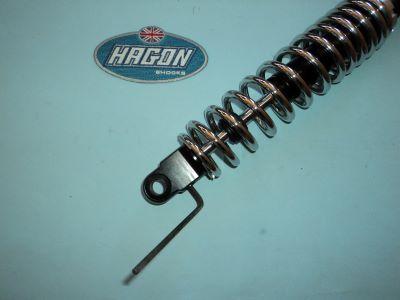 Amortiguadores 2820 Classic 3 de Hagon, para la BSA Gold Star 650. Los muelles empleados son de construccion progresiva.