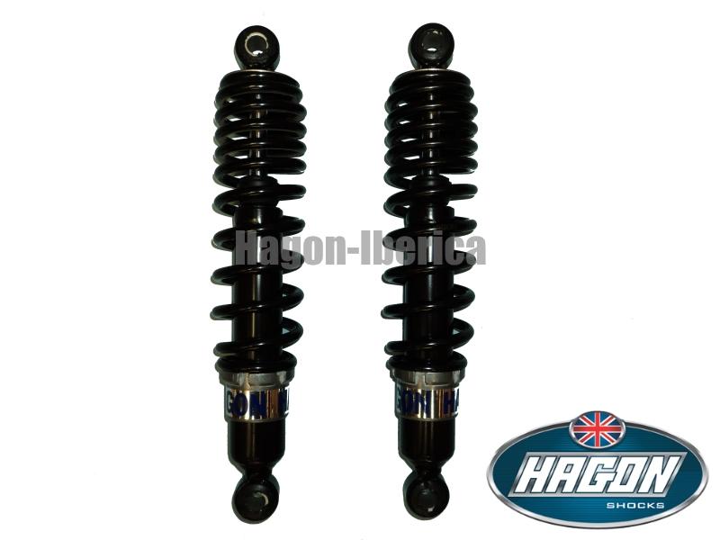 Los amortiguadores Hagon Road están hechas con el cuerpo en acero pintado de negro. Los muelles empleados son de construccion progresiva. Estandar los amortiguadores se suministran con muelles negros, muelles cromados es una opcion.
